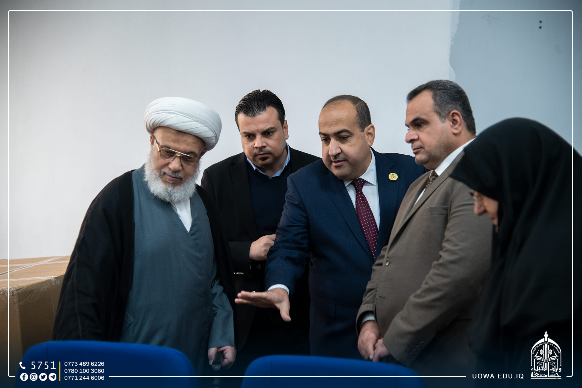 للوقوف على التطور العلمي والاكاديمي في الجامعة، تفقد سماحة المتولي الشرعي للعتبة الحسينية المقدسة الشيخ عبد المهدي الكربلائي (دام عزه)، برفقة السيد رئيس هيئة الصحة والتعليم الجامعي الدكتور ستار الساعدي جامعة وارث الانبياء(عليه السلام)، وكان باستقبالهم السيد رئيس الجامعة الاستاذ الدكتور ابراهيم الحياوي.