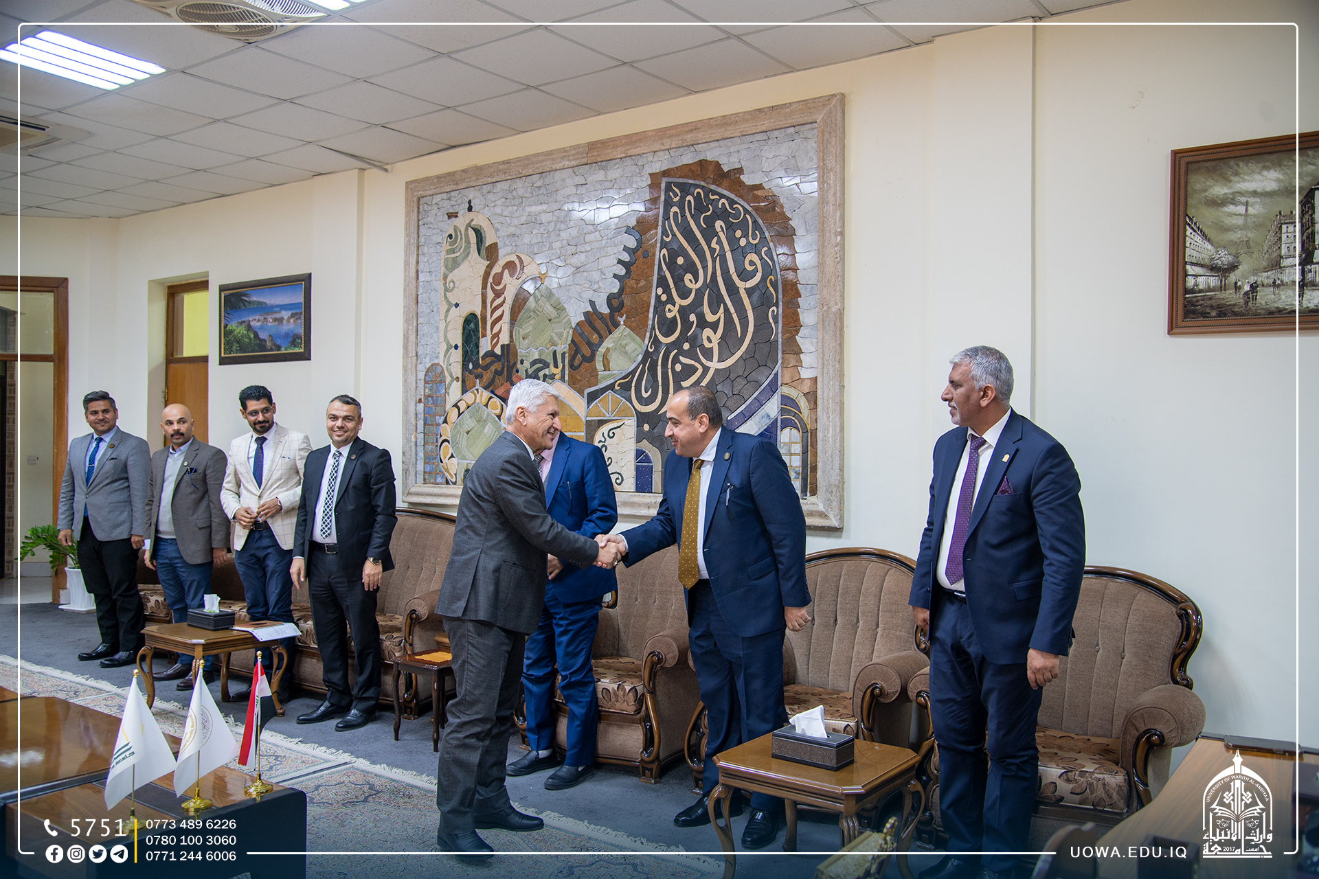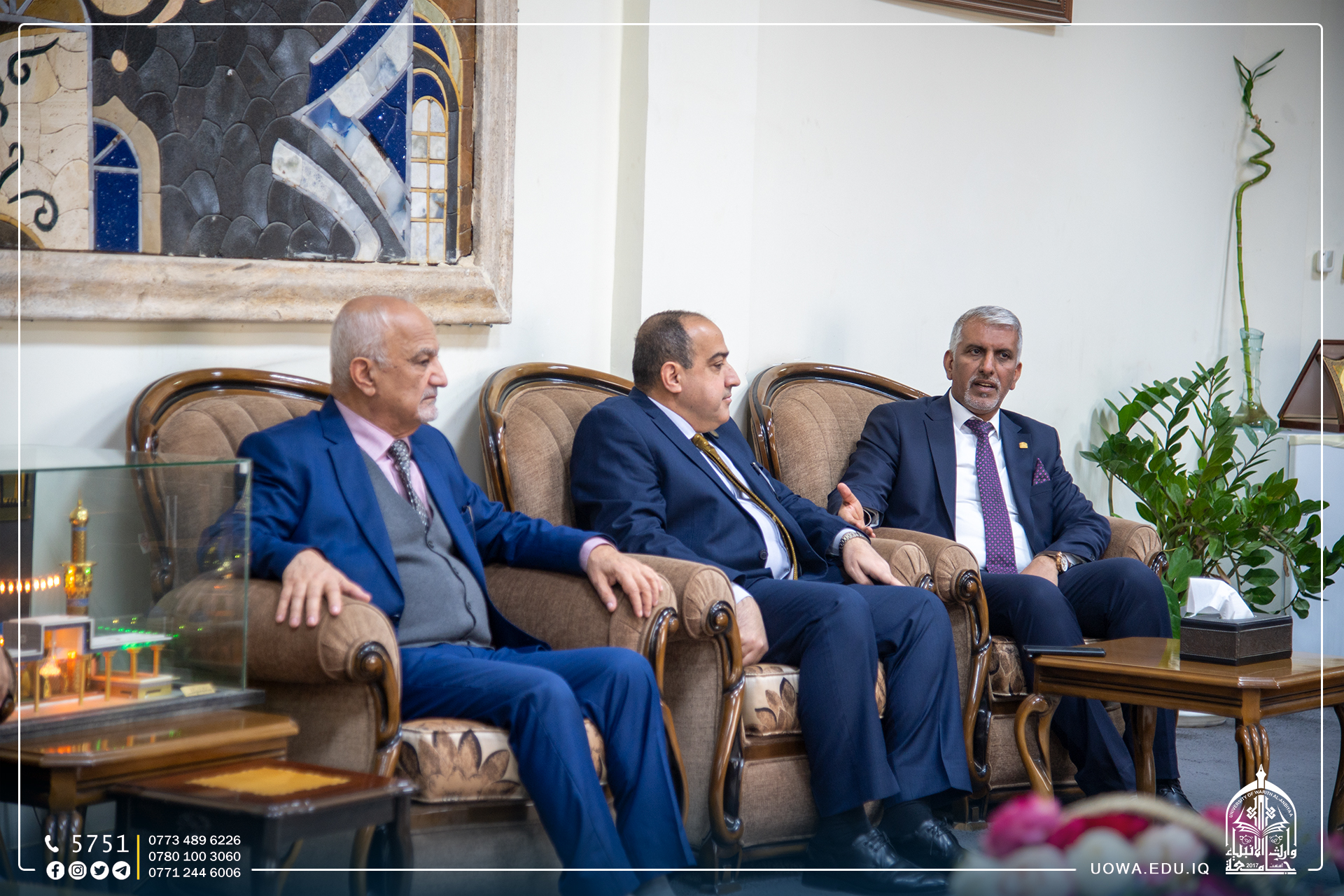 من أجل تعزيز التعاون العلمي في بنشر البحوث الرصينة بين جامعتي كربلاء ووارث الانبياء (عليه السلام)، زار السيد رئيس جامعة وارث الانبياء الاستاذ الدكتور ابراهيم سعيد الحياوي يرافقة المساعد الاداري الاستاذ الدكتور نوفل الاعرجي والوفد المرافق لهما جامعة كربلاء.