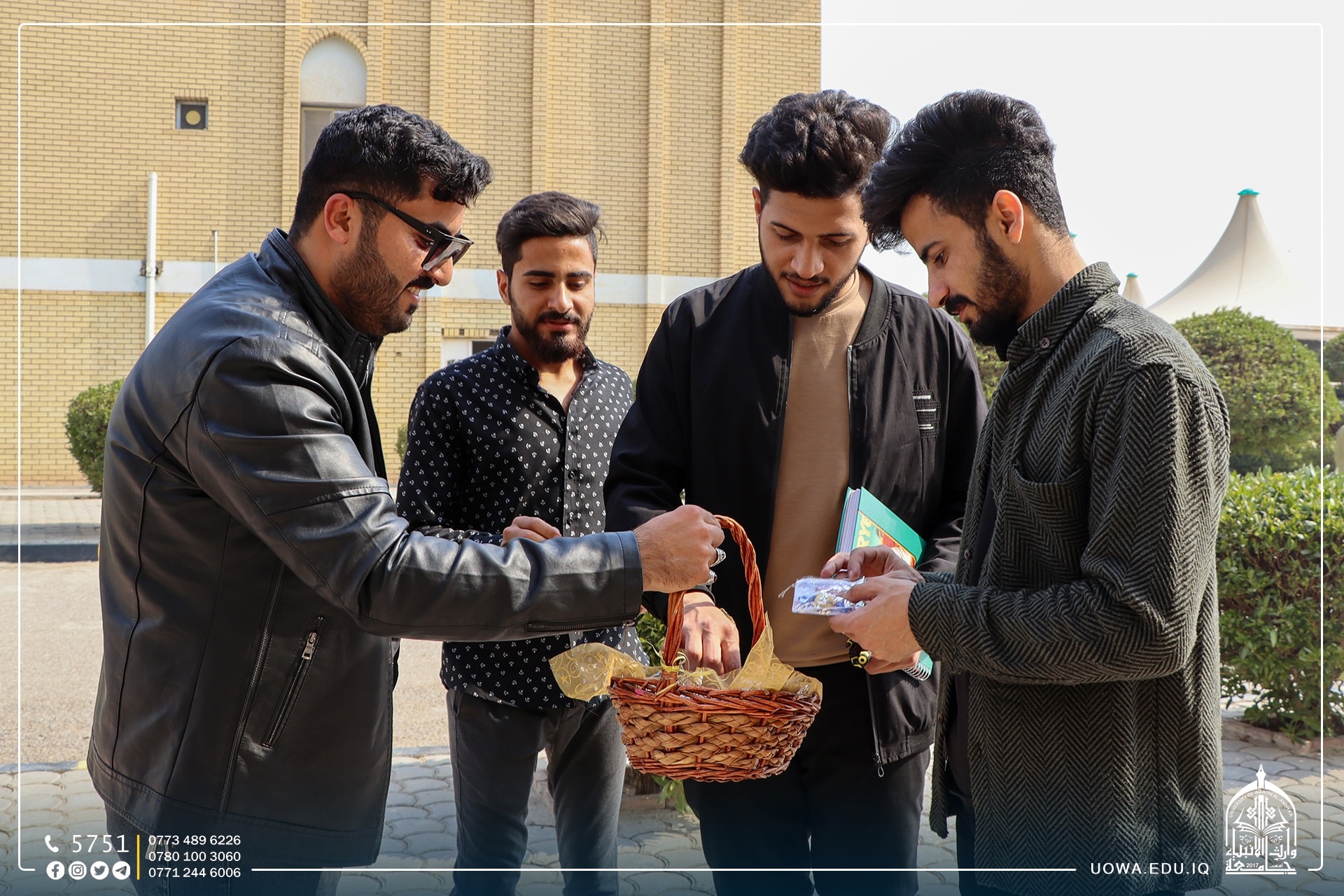 ضمن مشروع حبا بالحسين(عليه السلام)، فعالية توزيع الحلوى والمسبحة على طلبة الجامعة بمناسبة الولادات الشعبانية المباركة.
