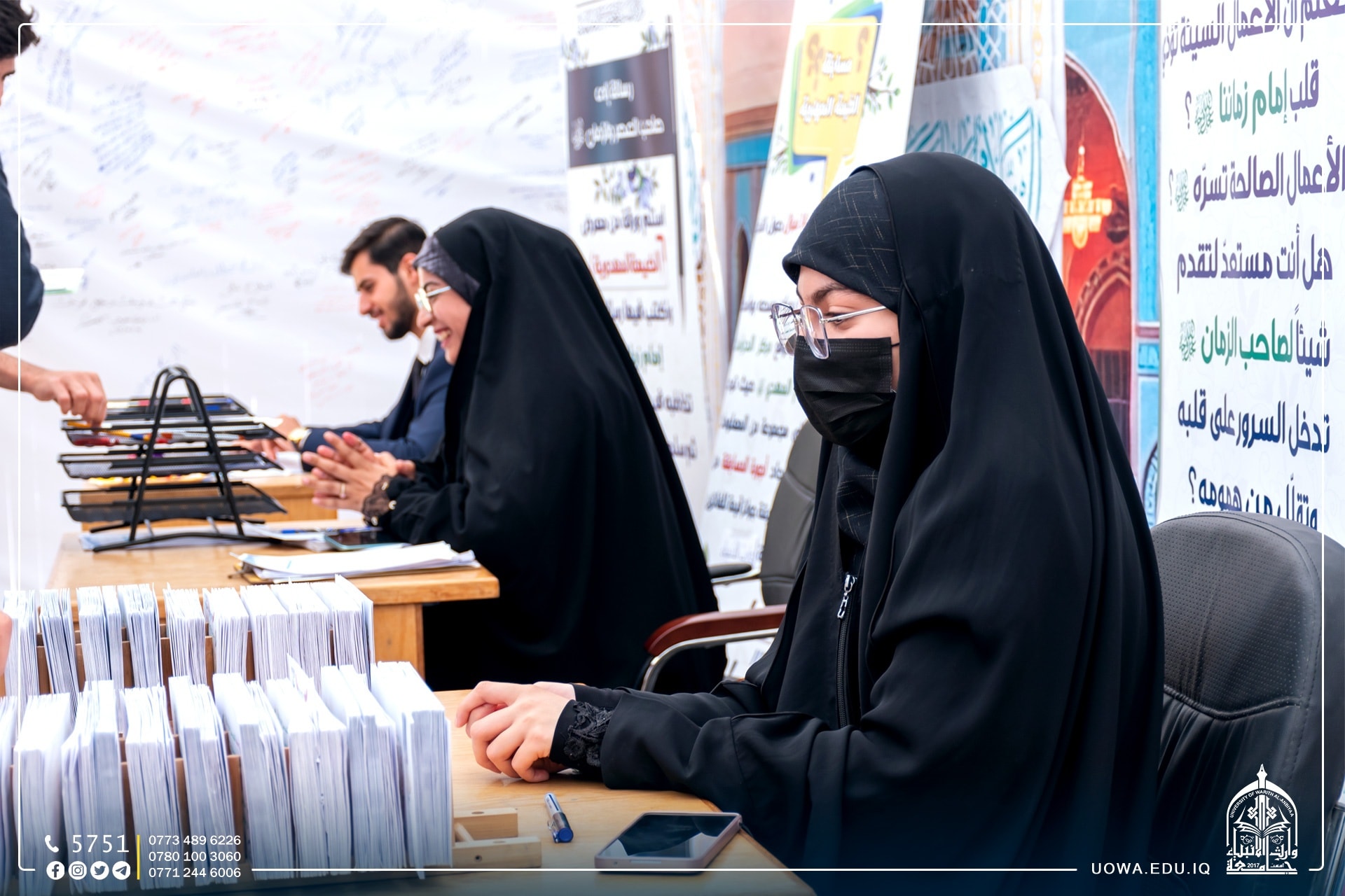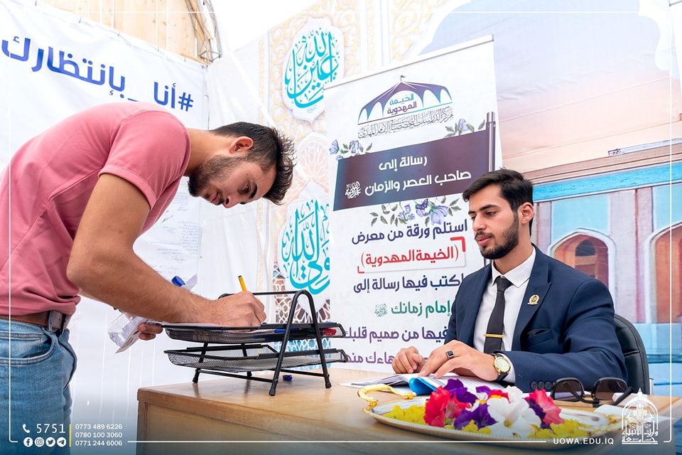 جانب مصور من استمرار فعاليات الخيمة المهدوية في رحاب جامعة وارث الانبياء(عليه السلام) وبالتعاون مع مركز الدراسات التخصصية في الامام المهدي (عج)، حيث تتضمن الخيمة عدد من المحاور منها الحوار المفتوح، ومعرض كتاب متخصص بالقضية المهدوية، وفقرة اختبر معلوماتك وغيرها من الفعالية الثقافية.