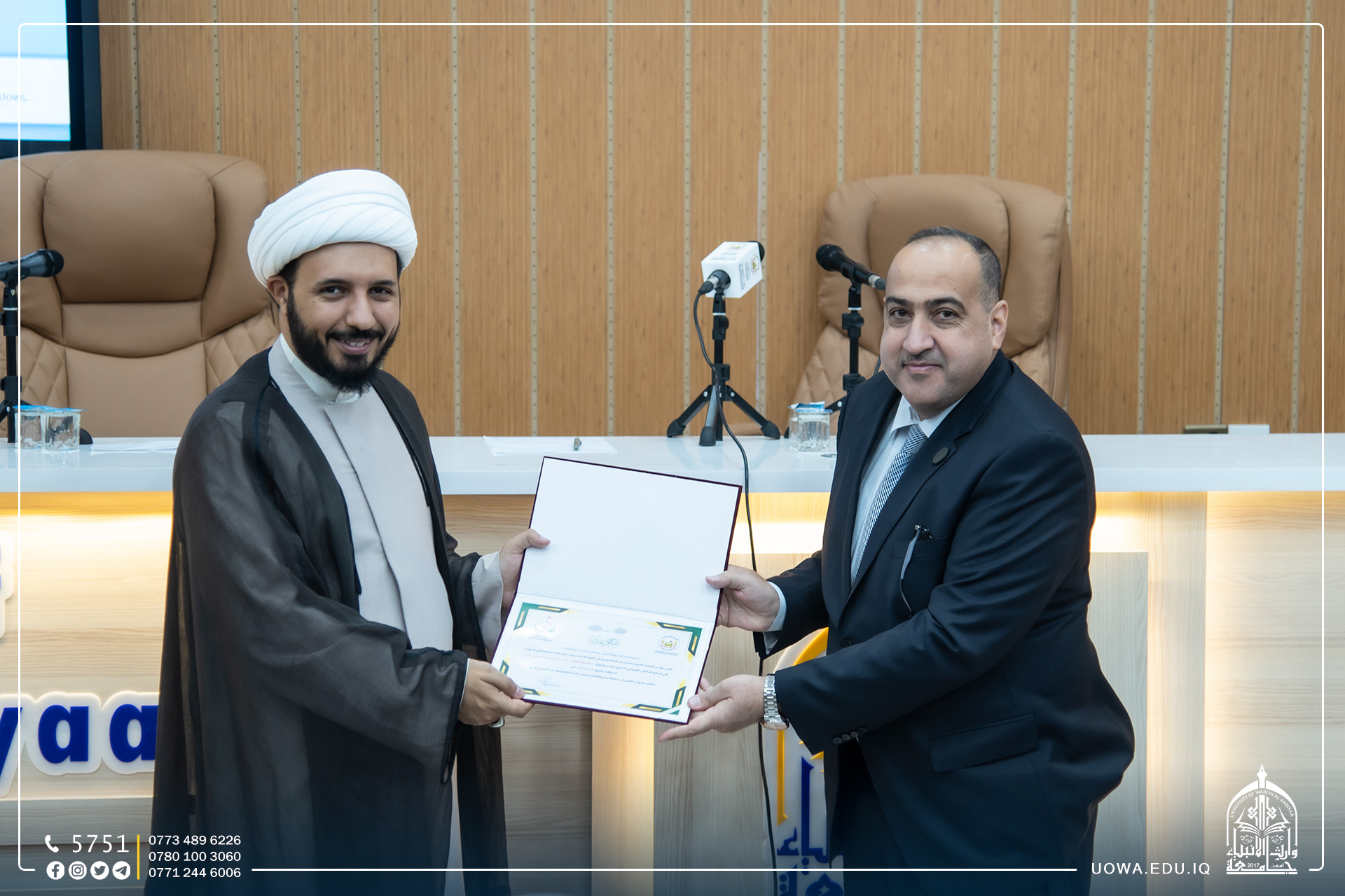استضافت رئاسة جامعة وارث الانبياء(عليه السلام)، سماحة الشيخ احمد سلمان مدير مركز أهل البيت (عليهم السلام) للدراسات والبحوث من دولة تونس، الذي قدم ندوة علمية بعنوان ( عالمية النهضة الحسينية وبعدها الانساني)