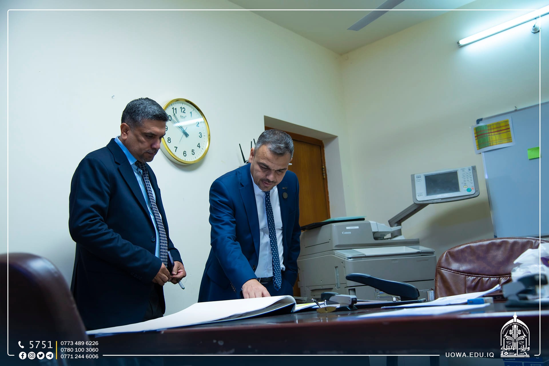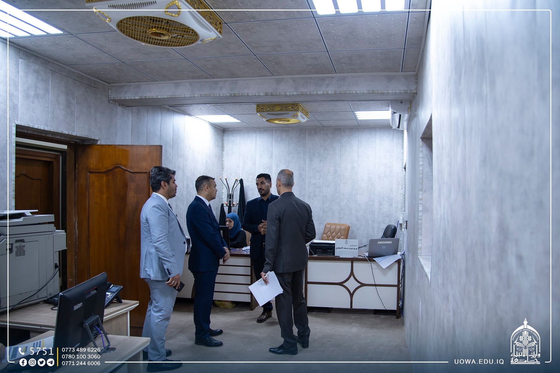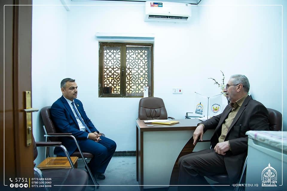 بالصور.. جولة تفقدية للسيد المساعد العلمي الاستاذ الدكتور واقد الموسوي يرافقه السيد رئيس قسم البعثات والعلاقات الثقافية المدرس الدكتور مهدي محمد مهدي داخل اروقة الجامعة،  ولقاء عدد من السادة عمداء الكليات، ورؤساء الاقسام لمتابعة الأعمال المنجزة ،والخطط المرسومة وآليات العمل وتطويرها بما يتلائم وتطلعات رئاسة الجامعة.
