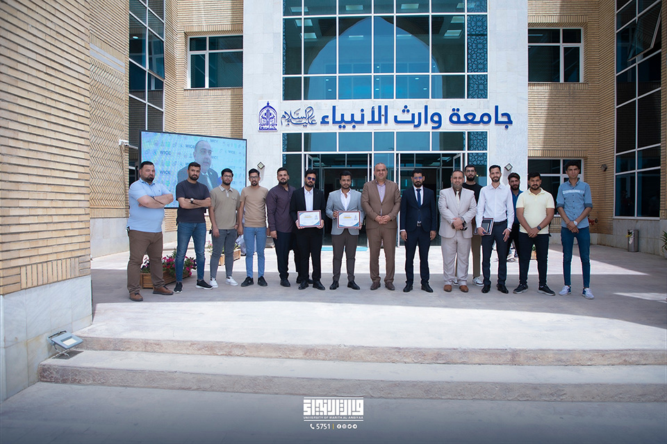 عمادة كلية الإعلام في جامعة وارث الانبياء(عليه السلام) تكرم عدد من طلبة الكلية لجهودهم المبذولة في المسابقة التي اطلقها السيد رئيس الجامعة الاستاذ الدكتور ابراهيم الحياوي ، والتي تمثلت " بأجمل تصميم لشعار الكلية ،وتصميم بروشور خاص بكلية الإعلام ، وفيديو دعائي احترافي".