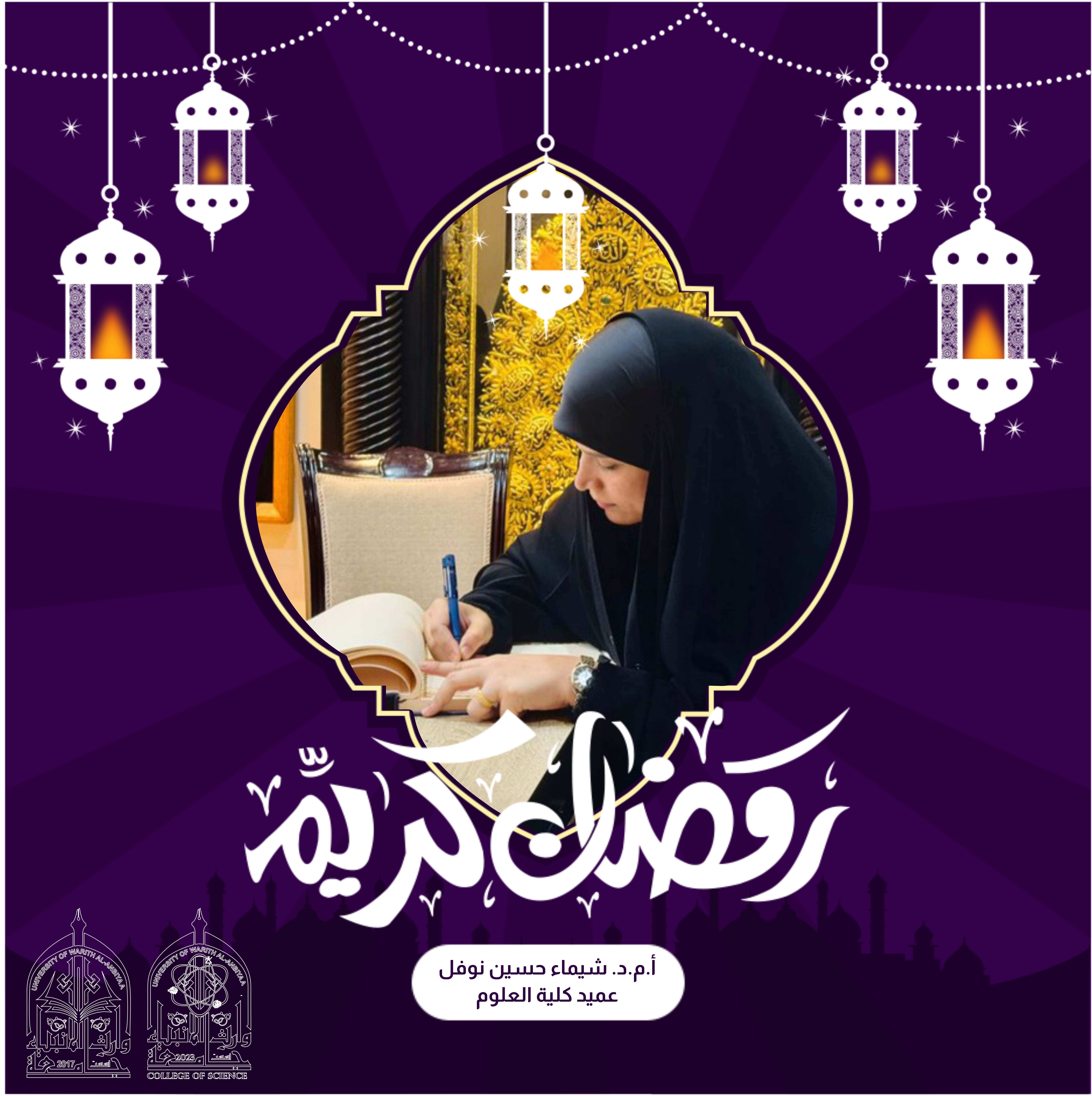 تهنئ كُلْيَة الهندسة / جامعة وارث الأنبياء الزميلة المهندسة " م.م. نور راغب كاظم " التدريسية في قسم الهندسة المدنية بمناسبة اجتيازها الامتحانات النهائية للفصل الدراسي الأول من المرحلة التحضرية لدراسة الدكتوراه في هندسة البيئة / جامعة بغداد سائلين المولى عز و جل ان يمن عليها بالتوفيق و النجاح خدمة لجامعتنا و عراقنا الحبيب.