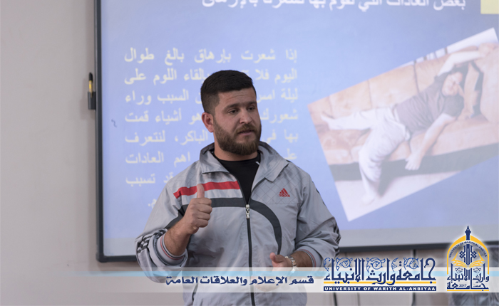 أقام قسم النشاطات الطلابية في جامعة وارث الانبياء حلقة نقاشية عن التعب والارهاق وطرق الوقاية والتخلص منهما , حيث بين رئيس قسم النشاطات الطلابية م.م. همام عبد العباس أن الارهاق هو أحد أكثر الحالات انتشارا بين أفراد المجتمع مما ينعكس بصورة سلبية على طاقة وحيوية الموظفين ونظراً إلى نمط الحياة المتسارِع، وكثرة الضغوطات والأعمال التي يقوم بها الشخص في اليوم، أصبح الشعور بالتعب والإرهاق من الأمور الملازمة للأشخاص، فهو يقلل من نشاط الإنسان وقدرته على تأدية الأعمال, كما وأدرج في الحلقة النقاشية عدة طرق لتغيير العادات السيئة والوصول الى أعلى انتاجية وقد تضمنت الحلقة النقاشية تدريبات رياضية ممكن عملها في المكتب للتخلص من الكسل والخمول.