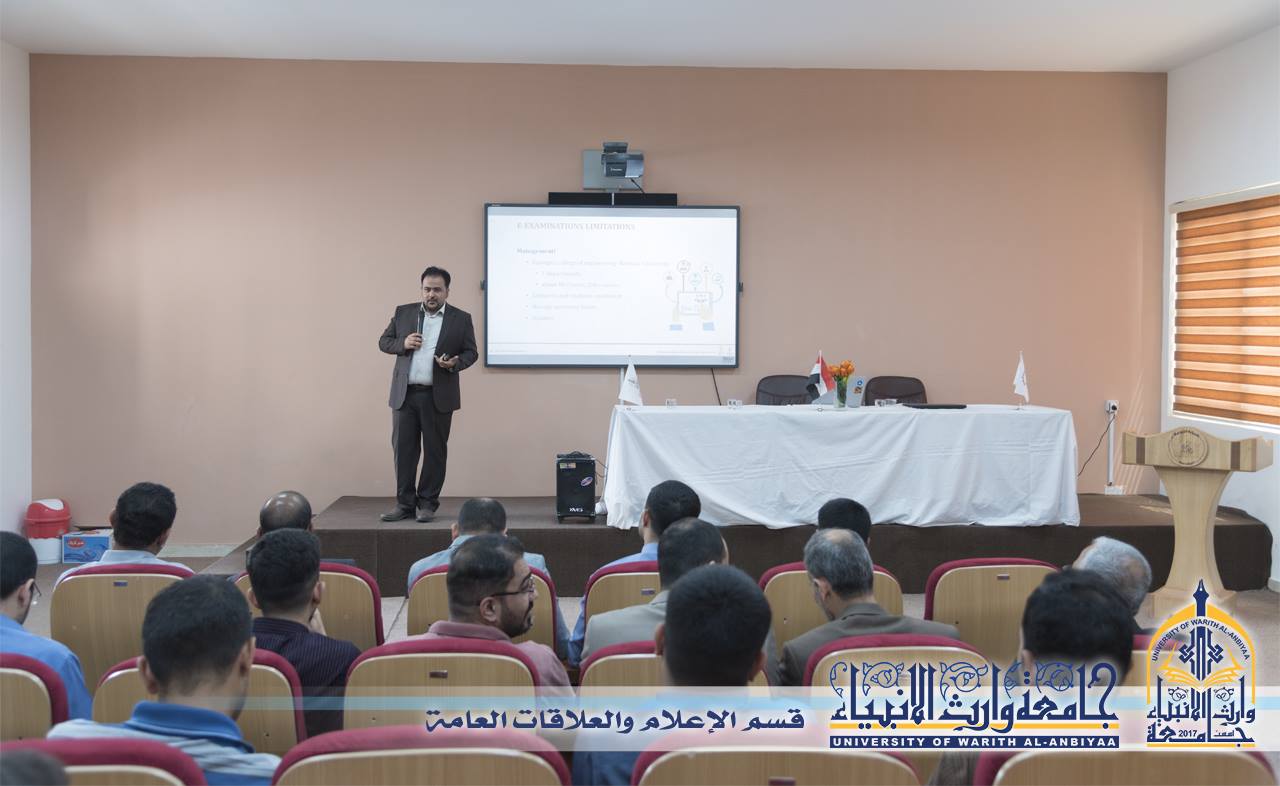 اقامت جامعة وارث الانبياء ورشة تدريبية لكوادرها وتدريسيها وذكر التدريسي في كلية الادارة والاقتصاد في جامعة كربلاء الدكتور مشتاق كريم أن الورشة التدريبية جاءت على ضوء الامكانيات الكبرى لاستخدام الحاسوب في تقريب المسافات وايصال المعلومات بشكل أكبر واختصار الوقت وأضاف أن الورشة تضمنت التعريف بالمنصة الالكترونية وتطبيقاتها وكيفية الادارة الذكية للكليات والجامعات ودعم التعليم الالكتروني, ومن الجانب الاداري بين أن الادارة في الجامعة ستكون الكترونية من قبل عمادات الكليات او ادارة الجامعة وسيكون وهناك تطبيقات للهواتف الذكي بين الطلاب والاساتذة واولياء الامور لتسهيل التواصل وكذلك دعم موقع الجامعة من خلال رفع جميع المحاضرات على الموقع الالكتروني وتسهيل جمع المعلومات وتثبيتها من حيث الاقساط الدراسية وتساعد كذلك في انضباط الطلبة والتزامهم بالدوام لانها تسجل الحضور اول بأول وكذلك الدرجاتوأشار كريم الى انها خطوة جيدة لاقت استحسان الكثير من الطلبة سابقا فيما يرتبط بالامتحان الالكتروني.
