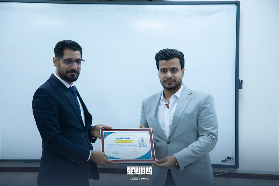 ضمن اعضاء لجنة التحكيم لاختيار افضل مشروع تخرج لطلبة قسم هندسة الطب الحياتي في جامعة النهرين.