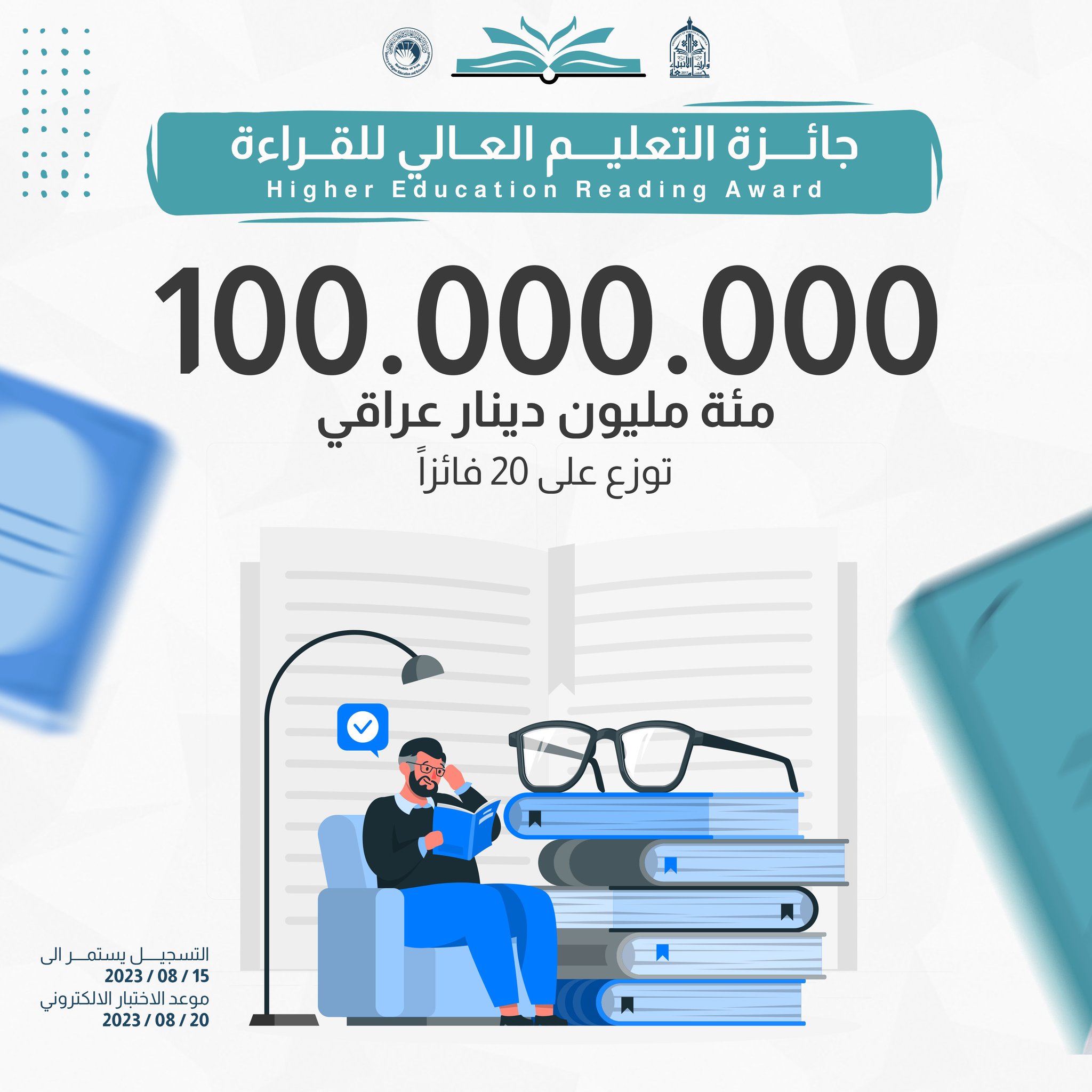 طلقت وزارة التعليم العالي والبحث العلمي مسابقة "جائزة التعليم العالي للقراءة" الخاصة بطلبة الدراسات الأولية في الجامعات العراقية كافة والتي قيمتها "مئة مليون دينار" تتوزع على عشرين فائزا. وتستند الجائزة الى التنافس على قراءة كتاب (شروط النهضة) للمفكر العربي مالك بن نبي.