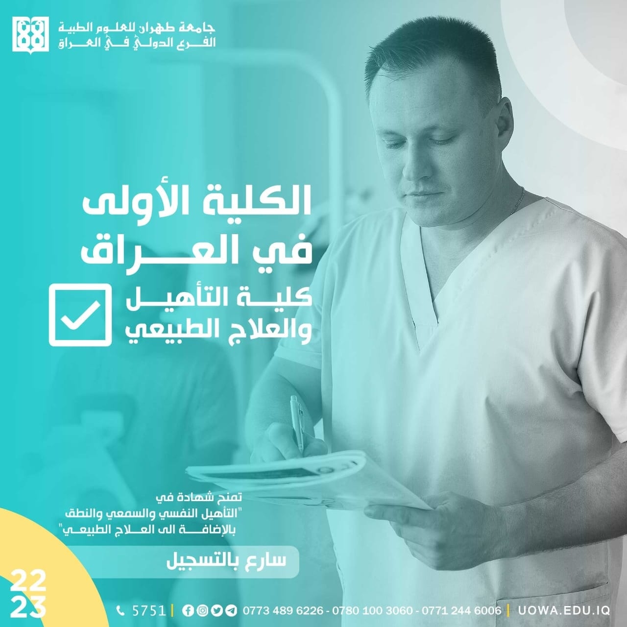 *عزيزي الطالب ايام قليلة لانتهاء التسجيل استثمر الفرصة الاخيرة للتسجيل في كليتا التأهيل والعلاج الطبيعي والتمريض والقبالة.