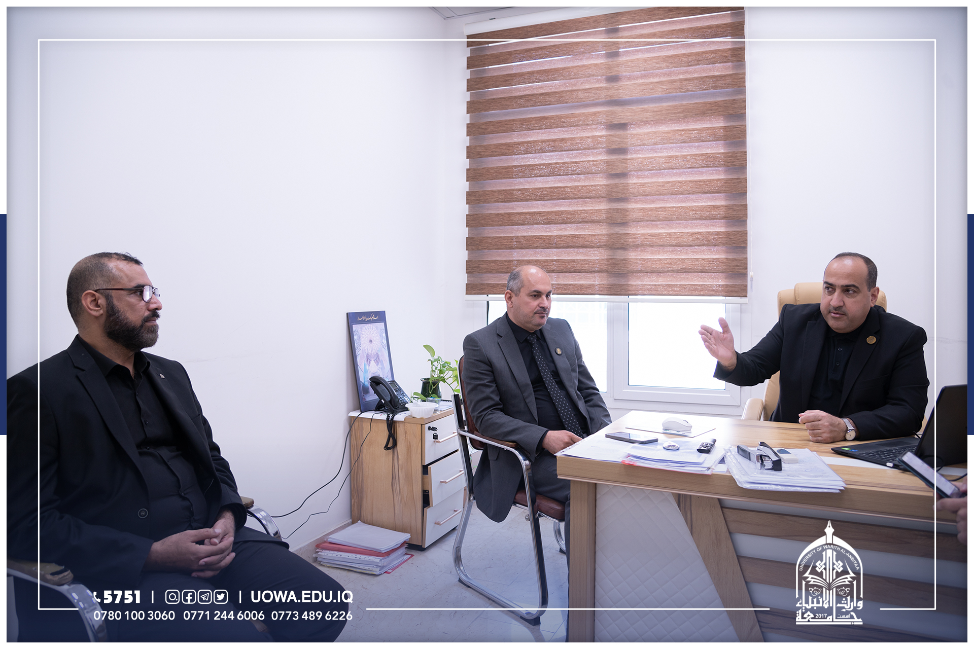 كلية الاارة والاقتصاد في جامعة وارث الانبياء جامعة المثنى وكان باستقبالهم الأستاذ المساعد الدكتور صفاء كريم عميد الكلية.