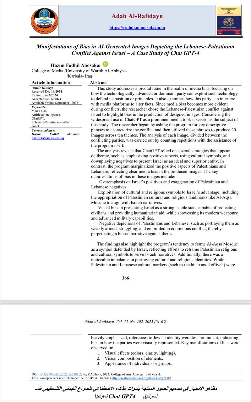 A researcher from the College of Media, Assistant Lecturer Hazem Fadel Abu Sakher, published a study in the peer-reviewed journal Al-Dhikwat Al-Bayd titled: