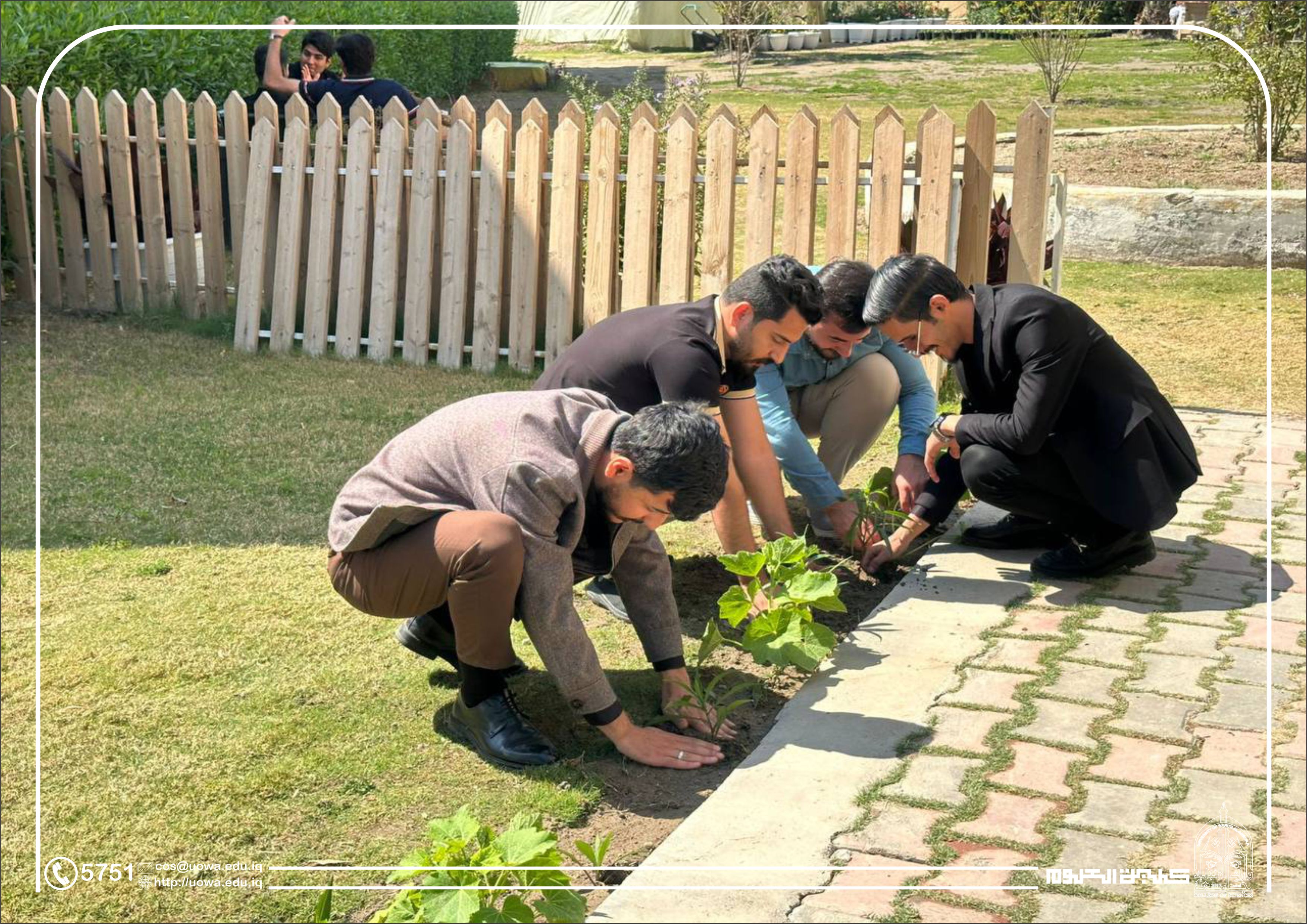 Under the auspices of the President of the University of Warith Al-Anbiyaa (PBUH), and as part of the university's initiatives to promote a sustainable academic environment, the College of Science organized an extensive afforestation campaign. The campaign covered the college's gardens and surrounding courtyards, with the active participation of faculty members and students.